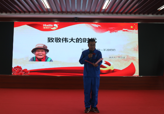 ? ? ? ?最后,青島奧迪斯工廠王俊杰以聲情并茂的表現、慷慨激昂的講說獲得評委一致好評,摘得桂冠;研發中心邱佳鵬以燃燈者的事跡唱響海利爾的時代強音,青島奧迪斯工廠閆曉佳以航天人逐夢星辰大海的激蕩之聲展示出海利爾人逐夢未來的風采,獲得二等獎;青島凱源祥工廠史文林、青島海利爾工廠原桂枝、青島凱源祥工廠李明輝的演講擲地有聲、干凈有力,獲得三等獎。其他參賽選手各具特色、各顯其能,獲得鼓勵獎。在此,向所有參賽選手表示祝賀。