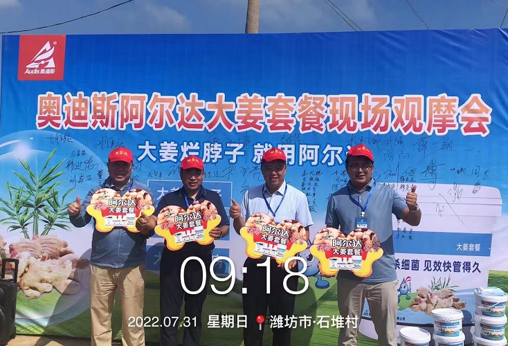 ? ? ? ?7月31日上午8時(shí)許,集團(tuán)董事長(zhǎng)葛堯倫攜集團(tuán)高級(jí)顧問胡全勝、董三星抵達(dá)濰坊安丘石堆村。在董事長(zhǎng)帶領(lǐng)下,包括客戶、業(yè)務(wù)經(jīng)理在內(nèi)的80多人前往示范地塊。8時(shí)30分,奧迪斯阿爾達(dá)大姜套餐現(xiàn)場(chǎng)觀摩會(huì)正式開始。炎炎夏日中,董事長(zhǎng)走向田間、躬身一線感動(dòng)了所有在場(chǎng)人員,董事長(zhǎng)倡導(dǎo)的“做放心產(chǎn)品,讓農(nóng)戶放心”的理論,更是展示了田間初心,贏得了在場(chǎng)人員的由衷敬佩,客戶紛紛與董事長(zhǎng)合影留念。
