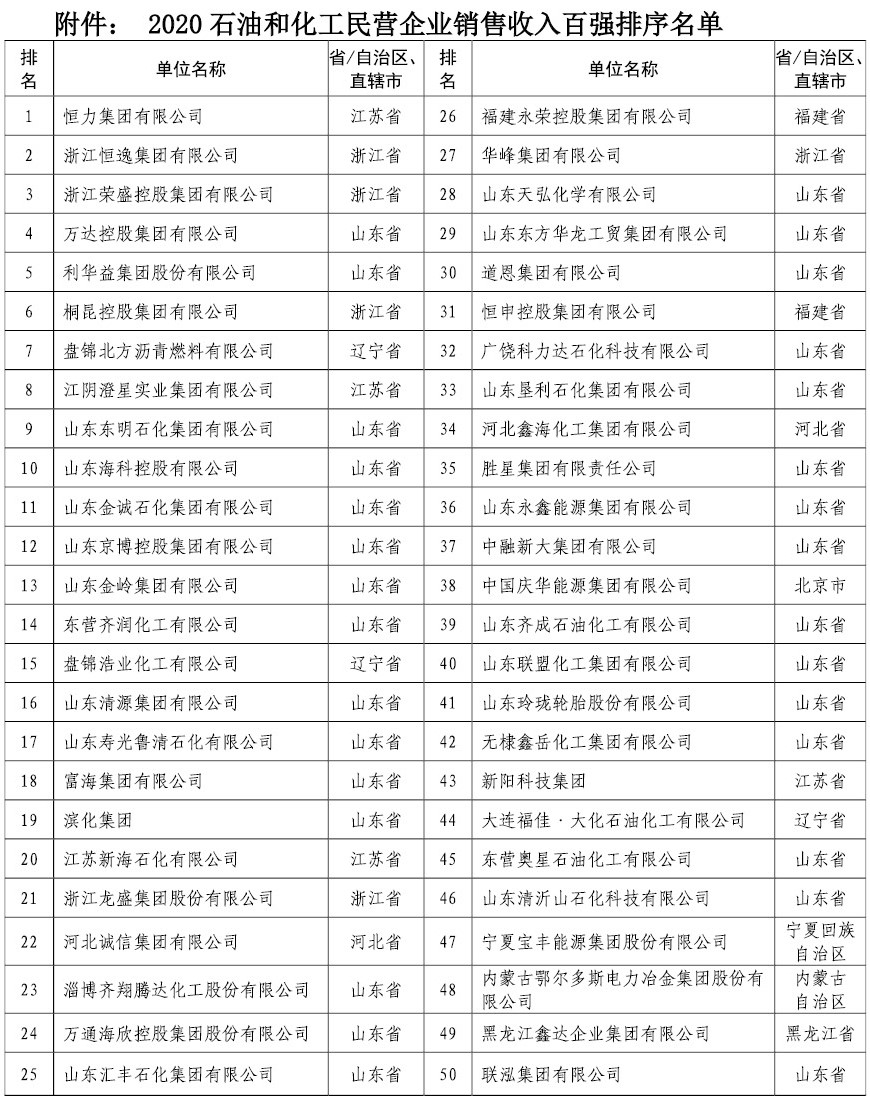 ? ? ? 會議指出,“十四五”是高質量發展的重要戰略機遇期,民企創新活力和發展潛力將得到進一步釋放。民營石化企業要充分發揮自身體制機制優勢,激發自身創新活力,推進產業基礎高級化、技術創新高端化、產業鏈現代化,以產業高端化、智能化、綠色化為著力點,努力在企業戰略、科技創新、市場開拓等方面再上新臺階。