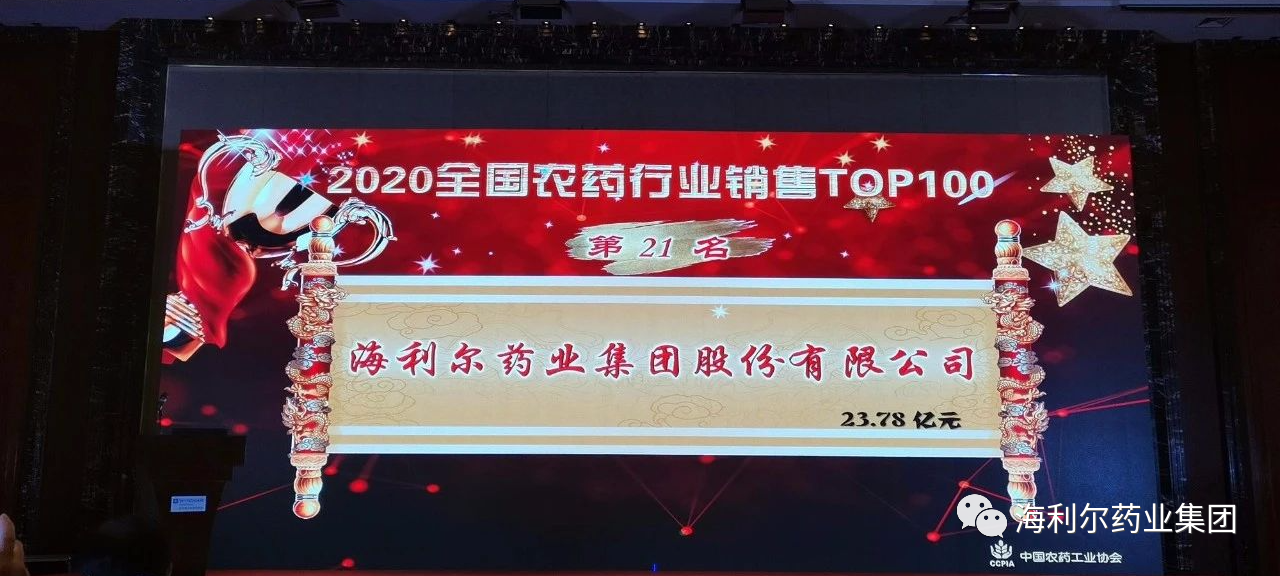 (海利爾藥業集團榮獲“2020全國農藥行業銷售TOP100”第21名)