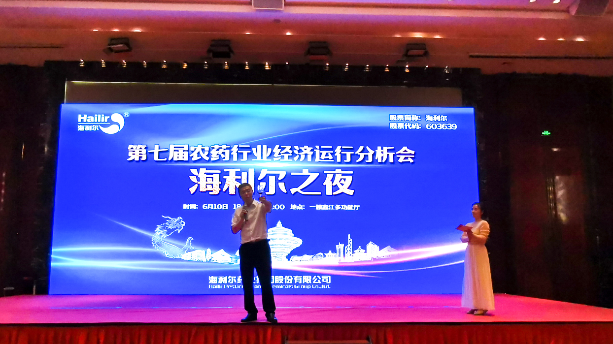 ? ?????2020年6月10日,第七屆農藥行業經濟運行分析會暨農藥行業排行榜發布會在青島城陽溫德姆酒店隆重召開。會議由中國農藥工業協會主辦,海利爾藥業集團股份有限公司提供贊助;邀請了中國農藥工業協會會長孫叔寶、農業農村部種植業管理司副司長朱恩林、中國石油和化學工業聯合會副會長李彬、農業農村部藥檢所副所長嚴端祥等,海利爾藥業集團董事長葛堯倫、總裁葛家成列席會議。