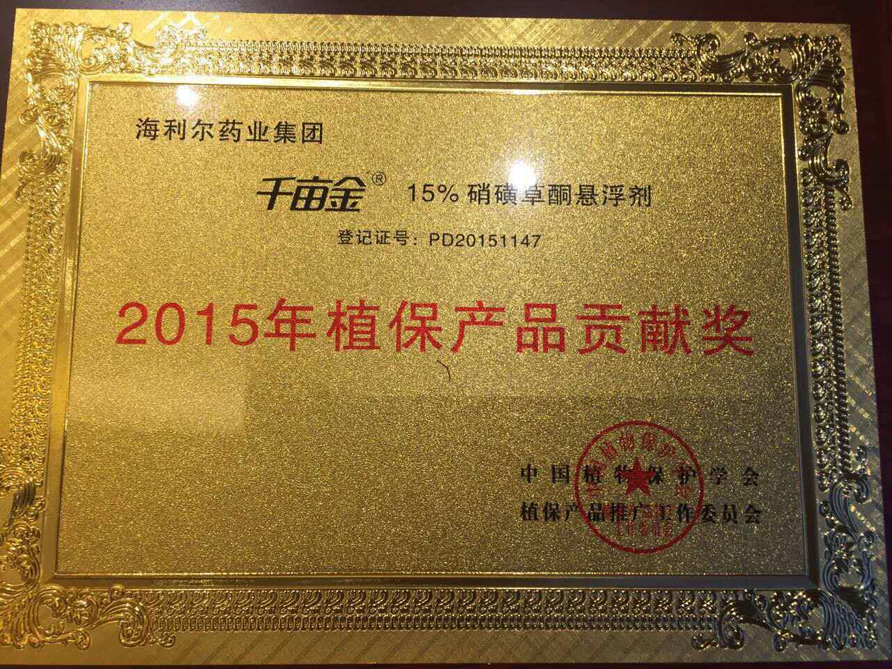 “嘧甲”、“千畝金”、“白加繡”三產品榮獲“2015年植保產品貢獻獎”是中國植物保護學會對三產品的高度認可。海利爾藥業集團將加大研發力度,繼續致力于為種植者提供更加安全、環保、低毒的農藥產品,助力廣大種植者豐產增收,為國家實現在2020年農藥用量零增長目標貢獻力量。