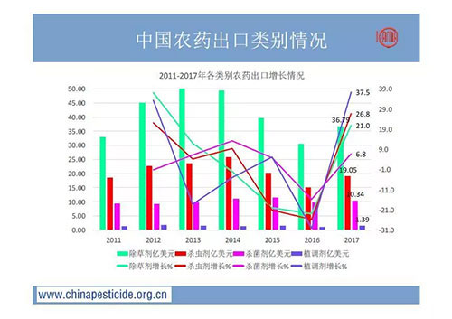 ??? 預(yù)計(jì)2018年,我國(guó)農(nóng)藥出口貿(mào)易將持續(xù)保持增長(zhǎng)趨勢(shì),預(yù)計(jì)增長(zhǎng)速度將超過2位數(shù)。