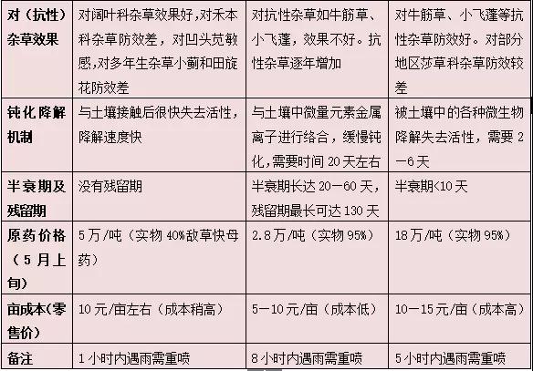 幾種滅生性除草劑對比