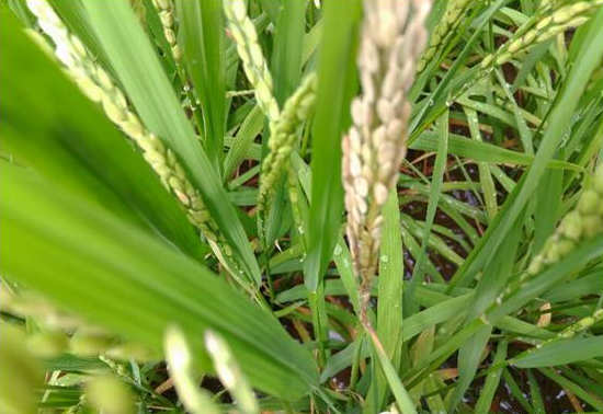 嘧甲防治區,齊穗期水稻發病輕綠,病害發生很輕