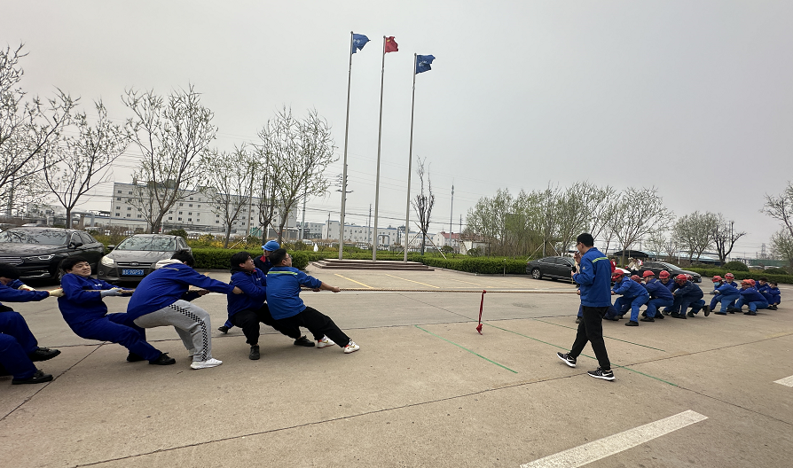? ? ? ?比賽在山東海利爾工廠人力行政處處長(zhǎng)楊子江的一聲哨響后開(kāi)啟了激烈的角逐,大家齊力后仰,拼命的拉著繩子。