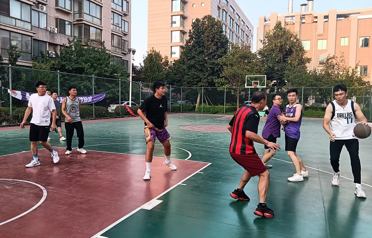 下午6時10分,集團總部籃球場上人頭攢動、熱鬧非凡。在新老員工的期盼中,楊克飛帶領(lǐng)的老員工隊,郭炳龍領(lǐng)銜的新員工隊,郝代帥為首的裁判員代表先后入場。裁判員講明比賽規(guī)則,雙方隊員握手致敬,體現(xiàn)了簡單坦誠陽光的氛圍。隨著哨聲響起,雙方球員躍起爭球,比賽開始。賽場上,雙方均亮出最強實力,老員工配合嫻熟、積極跑位、相互掩護,展示了團結(jié)協(xié)作的風(fēng)貌;新員工快速反擊、瀟灑帶球、運球上籃,整套動作如行云流水一氣呵成,將頑強拼搏的精神展現(xiàn)得淋漓盡致。比賽中,新員工佩服老員工的沉穩(wěn)和耐力,老員工感慨新員工的倔強與激情,雙方你追我趕,聯(lián)合為觀眾呈現(xiàn)了精彩的籃球賽事。賽場外,觀賽員工為隊員們搖旗吶喊、加油鼓勁,現(xiàn)場氣氛愉快而又熱烈。經(jīng)過激烈比拼,最終老員工隊伍贏得了本次籃球友誼賽的勝利。