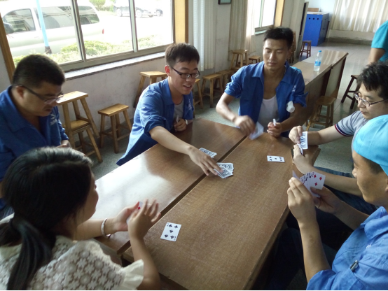 務實隊&正直隊最先結束對抗,正直隊勝出,他們的表情也非常輕松,看來早已是勝券在握啊。誠信隊&超越隊在比賽過程中就比賽規則有一些小爭執,我們看到裁判員已經在進行調節。比賽繼續進行,超越隊勝出。坦誠隊&感恩隊在比賽的尾聲出現了逆轉,原本感恩隊的陳雷、陳雅雯想悶掉坦誠隊的原廠長,但無奈原廠長變換了出牌方式,以致對方無法實施原計劃戰術,最后坦誠隊勝出。在陽光隊&服務隊的對抗中,實力雄厚的陽光隊也輕松勝出。