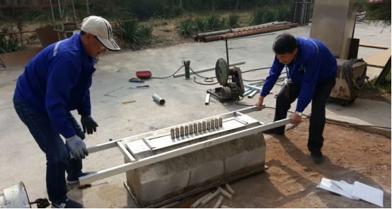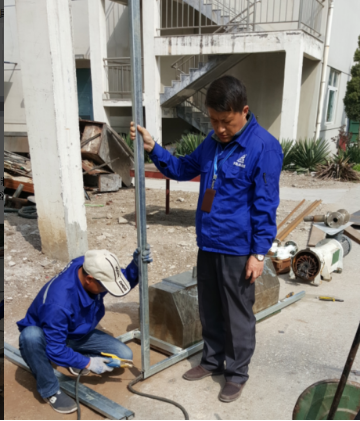 ? ? ??蘇廠長與設備科人員進行半自動灌裝機的焊接
