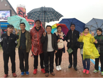 ? ? ? 盡管這天下著雨,員工們還是興高采烈的在家門口觀看風箏表演。