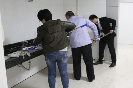 大家穿著統一的藍色馬甲,一下子意識到了自己的身上的責任和使命。我們這次活動的主要任務是清理餐廳和家屬樓一單元。大家明確分工,領著工具便風風火火開展起來。讓我們一起來看看志愿者的風采吧: