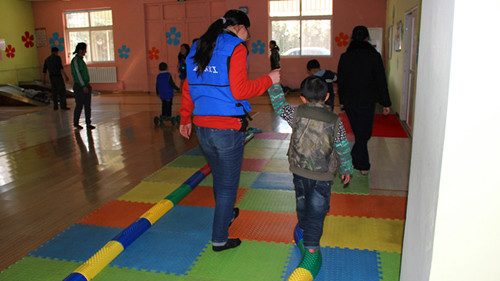 ? ? ? ?從穿上海利爾義工服的那一刻起,我們就覺得自己身上帶著一份很重的責任,用心與小朋友交流,用關愛去感化他們。進入康復訓練大廳,就能感受到這群孩子的“不一樣”,每個孩子都是個人玩個人的,沒有溝通和交流,也沒有孩子在意我們的到來。看到這個場景,我們都感到很心疼。我們漸漸地融入他們,整個下午我們一直在努力與他們玩游戲,幫助他們做康復訓練。我們每個人都很耐心的跟他們玩在一起。他們對我們笑了,我們就很開心,他們跟我們講話了,我們就很滿足。
