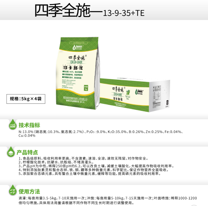 產(chǎn)品名稱 四季全施—13-9-35+TE